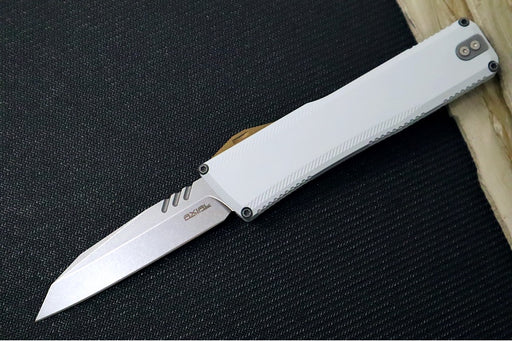 View full detailsAxial Knives SHIFT V_3 OTF - Hidden White Anodized Aluminum Handle & Bronzed Hardware / Stonewashed Clip Point Blade / CPM-Magnacut Steel