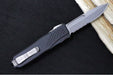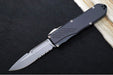 This knife combines resilience with a sleek, tactical aesthetic, featuring a MagnaCut steel blade. The Recon-035 G2 Double-Action Automatic has an overall length of 8 inches and a closed length of 4.50 inches. Its 3.375-inch fine-edge spear-point blade showcases a striking all-black finish, complemented by an all-black Type III Hardcoat Anodized Aluminum handle. The handle, approximately 7/16 inches thick, features milled traction slots and jimping for a secure grip. The thumb slide rides on a stainless steel plate with ceramic balls to reduce friction. All hardware is finish matched, and the knife includes a reversible pocket clip for tip-down carry, along with a lanyard hole for added versatility.