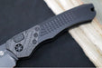 This Wraith Auto is a tactical version has a black DLC coated drop point blade with a black aluminum handle and a marbled carbon fiber bolster.