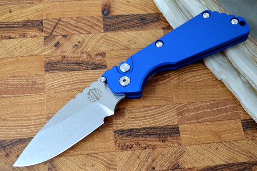 View full detailsPro Tech Strider PT+ Auto - Blue Anodized Aluminum Handle / Stonewash Finish / CPM-Magnacut Steel PT201-BLUE