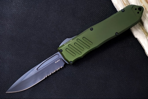 View full detailsGuardian Tactical Recon 040 OTF - Serrated Drop Point Blade / Black Tactical Finish / Elmax Steel / OD Green Anodized Aluminum Handle 118112