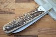 This extraordinary construction idea is very rare these days, which is why we are happy to be able to offer the mechanism to all fans of classic knives. Both blades are made from 440C and polished. Thanks to the sturdy construction of the 3 mm thick main blade, the Enigma is a great utility knife that also comes in very handy for hunters. Brass tangs and nickel silver highlight the classic appeal. With scales made from carefully selected stag.