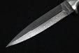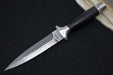 The steel of the MG-42 is forged by our long-time and experienced partner Chad Nicols into the heart of the dagger, the double-edged blade with a discreet hollow groove on both sides. The chosen Damascus pattern, Low Layer Raindrop (40 layers) is excellently accentuated by the symmetrical profile of the blade.