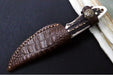 A beefy yet compact hunting knife and outdoor knife, designed by American knifemaker Jerry Lairson. The additional finger choil allows various grip positions, with maximum control for delicate cutting tasks, when grabbed "short" in forward coil. Notches on the blade spine provide positive control. Select stag scales with a red fiber underlay provide not only an attractive appearance, but also a safe and comfortable grip. The blade is made of high quality T6MoV steel. Includes an embossed leather sheath.