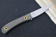 The robust full tang construction of 1095 carbon steel with a matt coating provides effective protection against corrosion. In addition, the textured handle scales made of olive green canvas micarta, with their additional milling, always lie securely in the hand. The brass-coloured hollow rivets in the handle not only reduce the weight, but also allow a safety strap to be attached. Supplied with a high-quality black leather sheath that can be worn comfortably on the belt.