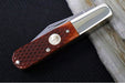 The Boker Treebrand 2BLD Barlow is a masterful fusion of timeless tradition and contemporary design, perfect for discerning knife enthusiasts. With two blades crafted from premium D2 steel, renowned for its exceptional edge retention and impressive corrosion resistance, this pocket knife embodies the artistry of classic craftsmanship while delivering the high-performance standards of today’s finest everyday carry (EDC) tools. The Barlow design, celebrated for its iconic "bar" shape, effortlessly merges its classic charm with the demands of modern use. The nail nick opening and slip-joint mechanism, equipped with a 90-degree stop, guarantee that the blades are securely locked in place until a gentle press allows for a smooth closure. The handle elevates the overall aesthetic with its exquisite brown checkered bone scales, providing a secure and comfortable grip. The polished nickel silver bolster adds an elegant touch, while three perfectly matched rivets enhance the knife’s timeless appeal. This striking piece is not just a collector’s treasure but also a dependable companion designed to excel in everyday tasks.
