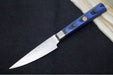 These knives are designed with a high-quality full-tang carbon 67-layered X-7 Damascus blade that performs effortlessly while also delivering an attractive look. Thanks to the blade's excellent heat treatment and 16-degree angle, these knives are both durable and maintain sharpness better than most others. The handle features a comfortable octagon shape and an eye-catching blue Pakkawood design with a Mosaic Pin. With the added benefit of a magnetic wood Saya sheath, each knife in the Kita series is ideal for safe storage. Your friends are sure to be envious of these knives.