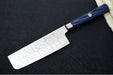 These knives are designed with a high-quality full-tang carbon 67-layered X-7 Damascus blade that performs effortlessly while also delivering an attractive look. Thanks to the blade's excellent heat treatment and 16-degree angle, these knives are both durable and maintain sharpness better than most others. The handle features a comfortable octagon shape and an eye-catching blue Pakkawood design with a Mosaic Pin. With the added benefit of a magnetic wood Saya sheath, each knife in the Kita series is ideal for safe storage. Your friends are sure to be envious of these knives.
