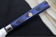 These knives are designed with a high-quality full-tang carbon 67-layered X-7 Damascus blade that performs effortlessly while also delivering an attractive look. Thanks to the blade's excellent heat treatment and 16-degree angle, these knives are both durable and maintain sharpness better than most others. The handle features a comfortable octagon shape and an eye-catching blue Pakkawood design with a Mosaic Pin. With the added benefit of a magnetic wood Saya sheath, each knife in the Kita series is ideal for safe storage. Your friends are sure to be envious of these knives.