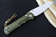 This version of the Large Inkosi is a Northwest Knives Exclusive and is direct from the CRK factory. This knife has an insingo blade in CPM-S45VN, a cerakoted handle in OD Green, and a camo lanyard with a bead.