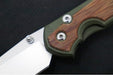 This version of the Large Sebenza is a Northwest Knives Exclusive and is direct from the CRK factory. This knife has a drop point blade in CPM-MagnaCut, a cerakoted handle in OD Green with Natural Micarta inlays, and a camo lanyard with a bead.