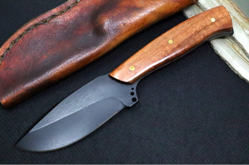 View full detailsEmery Custom Knives Fixed Blade 4" - Grandaillo Wood Handle / CPM-S35VN Blade / Hand-Stitched Brown Leather Sheath ZC00062546