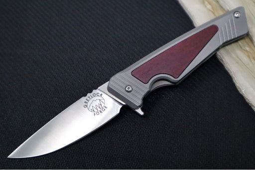 View full detailsGreylock Forge Knives Flipper - Blasted Full Titanium Handle with Purple Heart Wood Inlay / Satin Finish / CPM-Magancut Steel