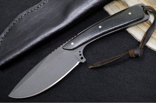 View full detailsGreylock Forge Knives Fixed Blade - Black Anodized Aluminum Handle / Stonewashed Finish / 1095 Steel / Hand-Stiched Brown Leather Sheath