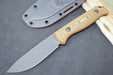 This 15002-1 Saddle Mountain Skinner is a custom and has a graphite black cerakoted drop point blade and an richlite/ orange G10 handle. This coating is extremely durable and done by SRG Armament in Nampa, ID. This knife also has an boltaron sheath with one side being orange and one being black.