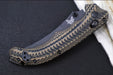 Crafted from premium CPM-S90V blade steel and elegantly finished with a Graphite Black Cerakote, it features an upswept scimitar blade shape that excels in both hooking and slicing tasks. Its handle, a stunning blend of coyote, black, and OD green G10, offers unmatched strength and a secure grip, making it perfect for demanding cutting jobs and swift maneuvers. With aggressive texturing, intricate milling, and serrations complemented by a chamfered backspacer, this handle delivers a distinctive grip experience that harmonizes beautifully with its elegant curves. The Mini Bedlam is not just a tool; it’s a statement of style and functionality.