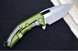 Heretic Knives Medusa Manual Flipper - Tanto Blade / CPM-Magnacut Steel / OD Green Anodized Aluminum Handle with Black Grip-Tape Inlays / Battleworn Finished Blade and Hardware H009-5A-GRN
