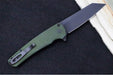 - "Dragon Scale" OD Green anodized aluminum handles for a lightweight knife