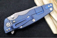 This Eklipse 3.5" has a Wharncliffe blade in a working finish, a battle blue finished titanium back scale and a black & blue G-10 front scale.