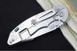 This is the ultimate in "Gray Man" blades. The handle is a Black & Blue G-10 with a tumbled gray titanium frame. The Blade is what is called a "stonewashed finish". The finish is gray as well. this gives the knife a very unobtrusive appearance. Not flashy at all...