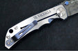 The HARSEY folder by Spartan Blades is another great collaboration between Spartan and William Harsey. Super ergonomic and comfortable, the stonewashed titanium handles are a joy to hold. The finger grooves fit right and the jimping is in the right places. This is a knife that can be used hard for extended periods of time and still be comfortable. The blade is Chad Nichols Damascus and is hollow ground for maximum sharpness. The knife is ambidextrous and has a reversible tip-up carry clip for right or left-handed carry.