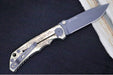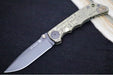 The HARSEY folder by Spartan Blades is another great collaboration between Spartan and William Harsey.  Super ergonomic and comfortable, the stonewashed titanium handles are a joy to hold.  The finger grooves fit right and the jimping is in the right places.  This is a knife that can be used hard for extended periods of time and still be comfortable.  The blade is CPM-Magnacut and is hollow ground for maximum sharpness.  The knife is ambidextrous and has a reversible tip-up carry clip for right or left-handed carry.