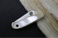 The latest version of Spyderco's smallest folding knife, the Bug, makes a bold statement with an upgraded design featuring nickel silver handle scales and genuine abalone inlays. The precision-machined scales have an interframe design that completely surrounds the abalone inlays, ensuring a flush and seamless fit. The edges are beautifully chamfered, enhancing their natural gold-colored tone. A stainless steel backspacer serves as the backbone of the knife’s slipjoint mechanism and supports the razor-sharp, full-flat ground blade, which is made from Sandvik 12C27 stainless steel. Showcasing jewelry-quality craftsmanship, this Bug sets a new standard in Spyderco style.