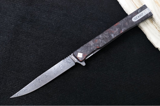 View full detailsOcaso Knives Solstice Damascus Flipper - Premium 120-layer Damascus Steel / Straight Blade / Dark Matter Red Carbon Fiber & Titanium Handle #101FR