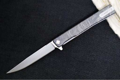 View full detailsOcaso Knives Solstice Damascus Flipper - Premium 120-layer Damascus Steel / Straight Blade / Dark Matter Bronze Carbon Fiber & Bronzed Anodized Titanium Handle #101FG