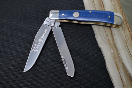 View full detailsBoker Treebrand Trapper - Denim Blue Canvas Micarta Handle / D2 Steel / Satin Finish 110887
