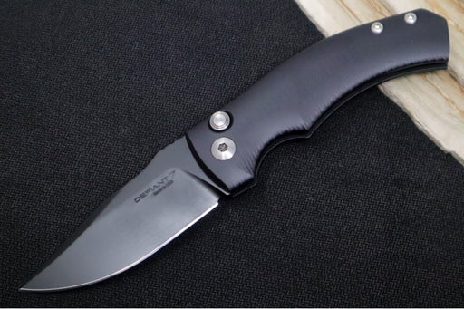 View full detailsDefiant 7 Valmara Push Button Automatic - Black DLC Finish / CPM-154 Steel / Black Hard-Coat Anodized Aluminum Handle