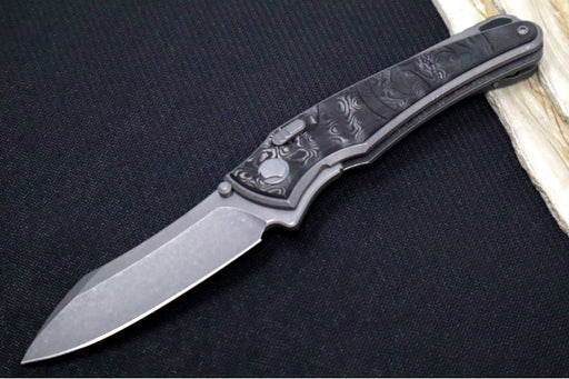 View full detailsHawk Knife Designs Talon Button Lock Flipper - Mars Valley Carbon Fiber Inlay & Tumbled Titanium Handle / M390 Steel / Tumbled Finish / Sheepsfoot Blade