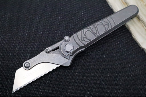 View full detailsHawk Knife Designs Shortcut Utility Flipper Knife - Tumbled Machined Titanium Handle / Replaceable Razor Blade