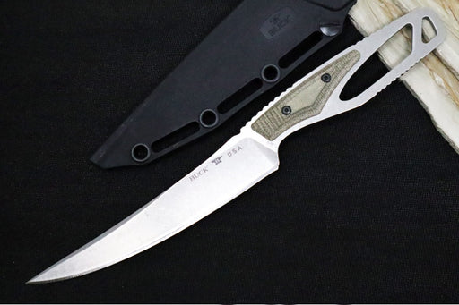 View full detailsBuck 630GRS Paklite Hide Pro Fixed Blade - CPM-S35VN Steel / Stonewashed Finish / Skeletonized Steel Handle with Green Canvas Micarta Handle / Black Polypropylene Sheath 0630GRS-B