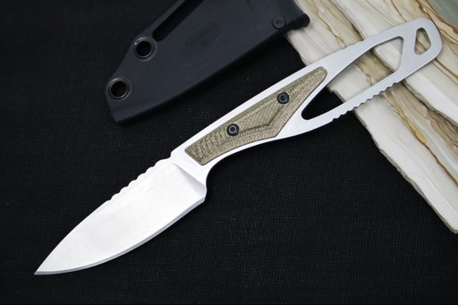 View full detailsBuck 635 Paklite Cape Pro Fixed Blade - CPM-S35VN Steel / Stonewashed Finish / Skeletonized Steel Handle with Green Canvas Micarta Handle / Black Polypropylene Sheath 0635GRS-B