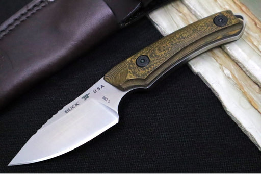 View full detailsBuck 662 Alpha Scout Pro Fixed Blade - CPM-S35VN Steel / Satin Finish / Layered Gorge Patterned Richlite Handle / Brown Leather Sheath 0662BRS-B