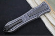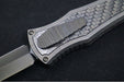 Hawk Knife Designs Deadlock Model C OTF - Stonewashed Titanium Handle & Black Carbon Fiber Insert / CPM-20CV / Black DLC Dagger Blade / Black DLC Titanium Accents