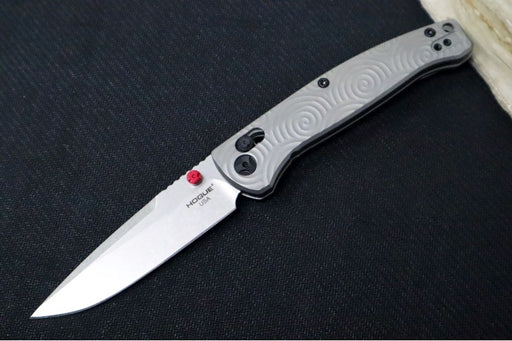 View full detailsHogue Knives Mysto - Stonewash Finish / Clip Point Blade / CPM-Magnacut Steel / Milled Patterned Titanium Handles & Red Accents / AXIS Lock 24491-LIM