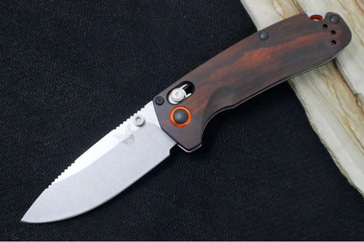 View full detailsBenchmade 15062 Grizzly Creek - CPM-S30V / Stonewashed Finish / Stabilized Wood Handle & Orange Accents