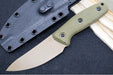 Schwarz Designs Confidante - Green Canvas Micarta Handle / Magnacut Blade / Coyote Tan Cerakote Finish / Black Kydex Sheath