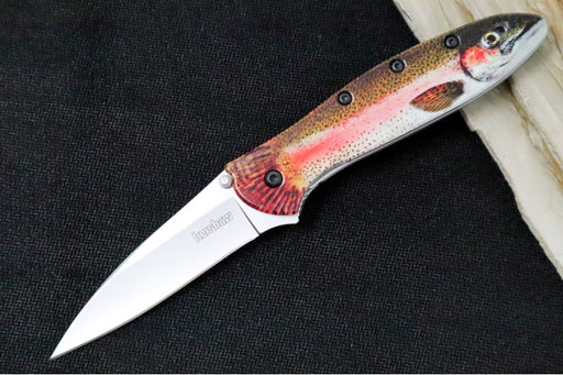 View full detailsKershaw 1660TROUT Leek Flipper - 14C28N Steel / Bead Blasted Finish / Trout Anodized Aluminum Handle