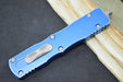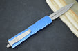 Microtech Dirac Delta OTF - Dagger Blade / Apocalyptic Finish / Distressed Blue Handle 227-10DBL