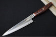 The handles are crafted from luxurious Cocobolo Rosewood Pakkawood, echoing the sheer elegance of the blades. Impeccable details include brass and red spacers, a mosaic pin, and a stainless-steel end cap, all thoughtfully designed to delight the senses. The graceful D-shaped handle fits snugly in your hand, ensuring a delightful and effortless cutting experience that inspires culinary creativity.