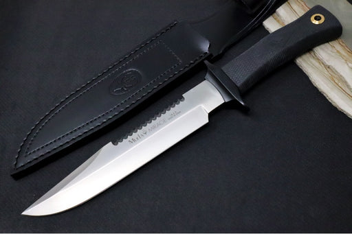 View full detailsMuela Knives SCORPION-18N Fixed Blade - Black Rubber Handle / Black 440C Stainless Clip Point Blade with Serrations / Black Leather Sheath