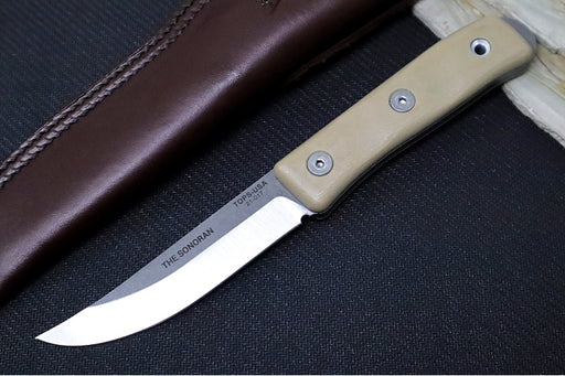 View full detailsTops Sonoran Fixed Blade - 1095 Steel / Tan G-10 Handle / Brown Leather Sheath TSNRN-01