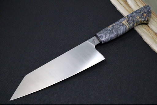 View full detailsCorey Dunlap Custom Knives - 7.25" Bunka Knife - Western Styled Burlwood Handle ZC00062581