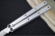 The highly anticipated Krake Raken balisong butterfly knife offers the first live-blade bali from Squid Industries. It features all of the precision-engineered smoothness of a Squid trainer, updated with a beautifully finished tanto blade. The channel constructed aluminum handles are built with rounded edges, a crowned spine, and bushings. The Krake Raken has been upgraded from 6061 to a 7075 aluminum alloy, which boasts a higher strength and is more durable to drops and use.