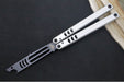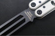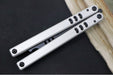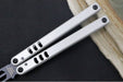 Squid Industries Mako V4.5 Balisong Trainer - Silver Anodized Aluminum Handle / DLC "Inked" Finished Stainless Steel Blade / Phosphorus Bronze Washers