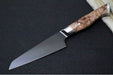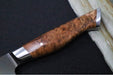 Steelport knives have solid one-piece traditional drop forged construction from blade tip to end cap with an integral bolster for a well-balanced and long-lasting knife. Through Steelport's proprietary heat treatment, American 52100 Carbon Steel achieves an unmatched 65 Rockwell Hardness at the blade for exceptionally long-lasting sharpness, while maintaining a softer 30HRC spine for lifelong durability. The bolster and spine are hand-polished smooth for a supremely comfortable pinch grip hold. All Steelport handles use Oregon Big Leaf Maple Burl, a locally sourced, naturally unique burl wood, stabilized with resin to meet tough kitchen requirements and won't shrink or swell. A new Steelport knife is immediately recognizable by its dark two-toned patina with visible grain patterns and temper line.
