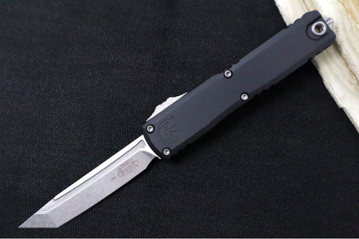 Microtech Ultratech ZBP (Zero Blade Play) OTF - Stonewash Finish / Dagger Blade / Black Anodized Aluminum Handle 1122-10